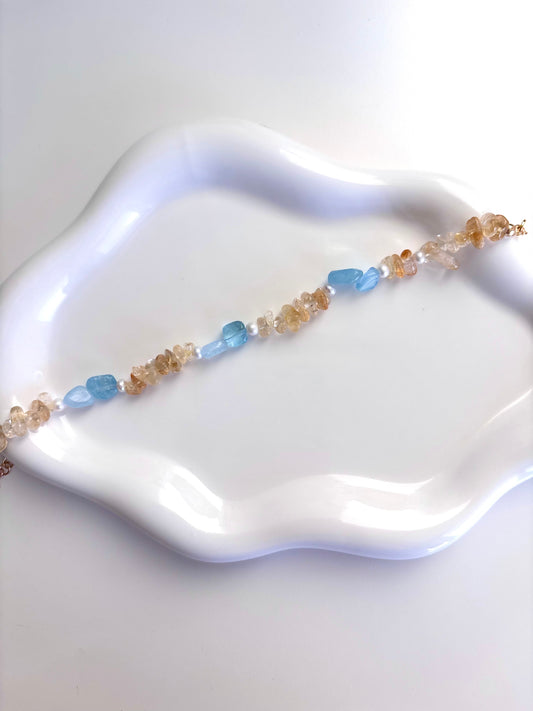 Citrus Tide - Aquamarine, Citrine, Pearl Bracelet