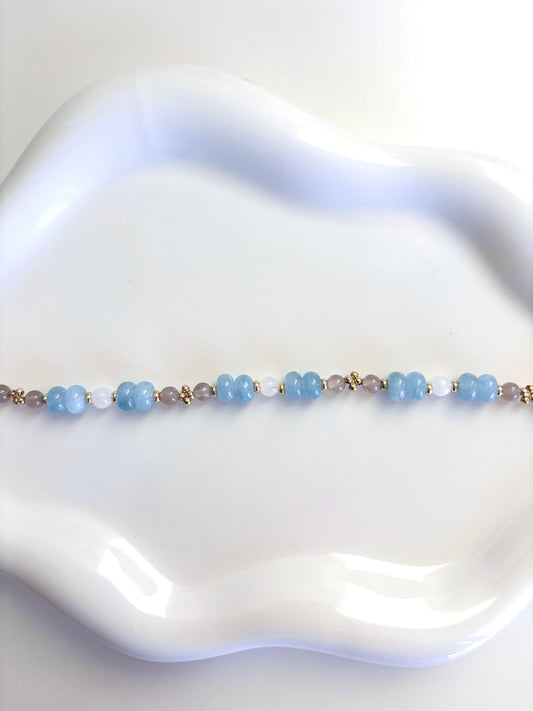 Blue Mist - Aquamarine, White Jade, Grey Agate, 18k Gold Filled Beads Bracelet