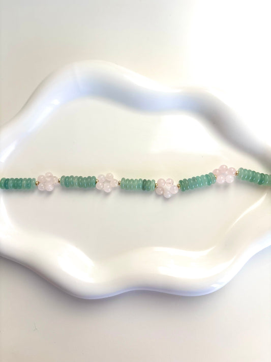 Bamboo Flower - Rose Quartz, Green Aventurine Bracelet