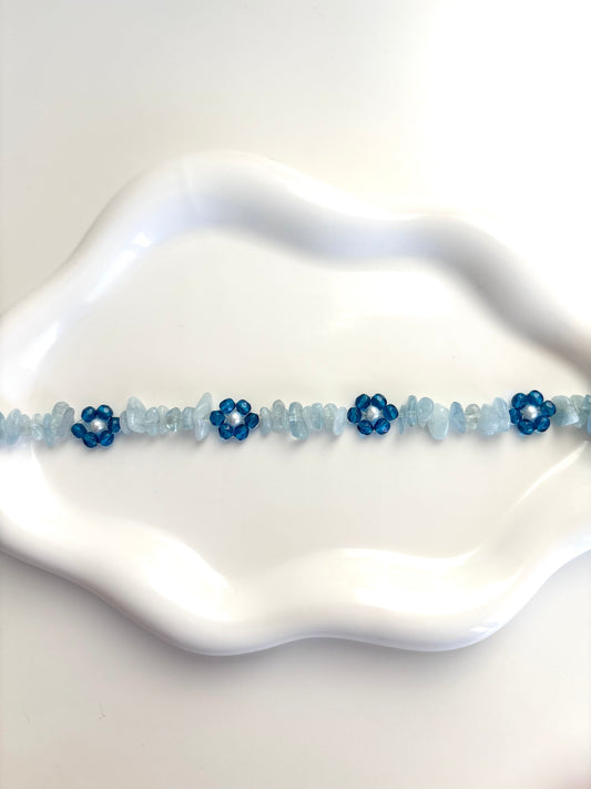 Azure Bloom - Aquamarine, Pearl, Czech Glass Bracelet