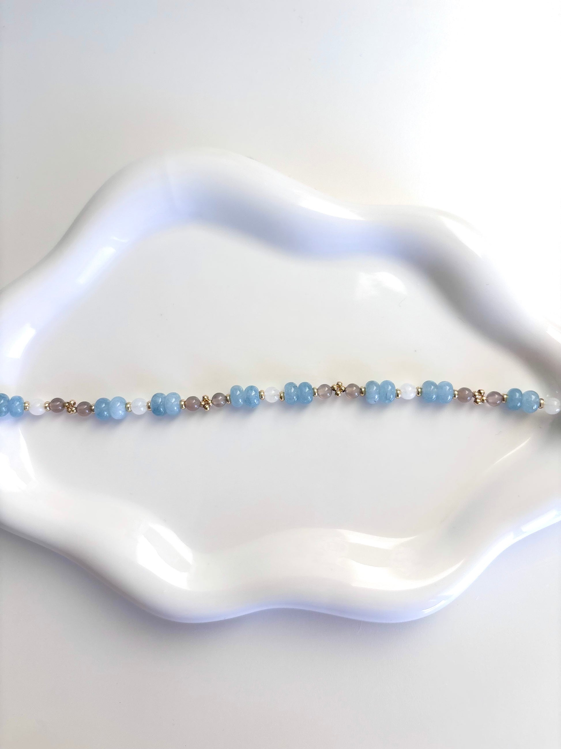 Blue Mist - Aquamarine, White Jade, Grey Agate, 18k Gold Filled Beads Bracelet