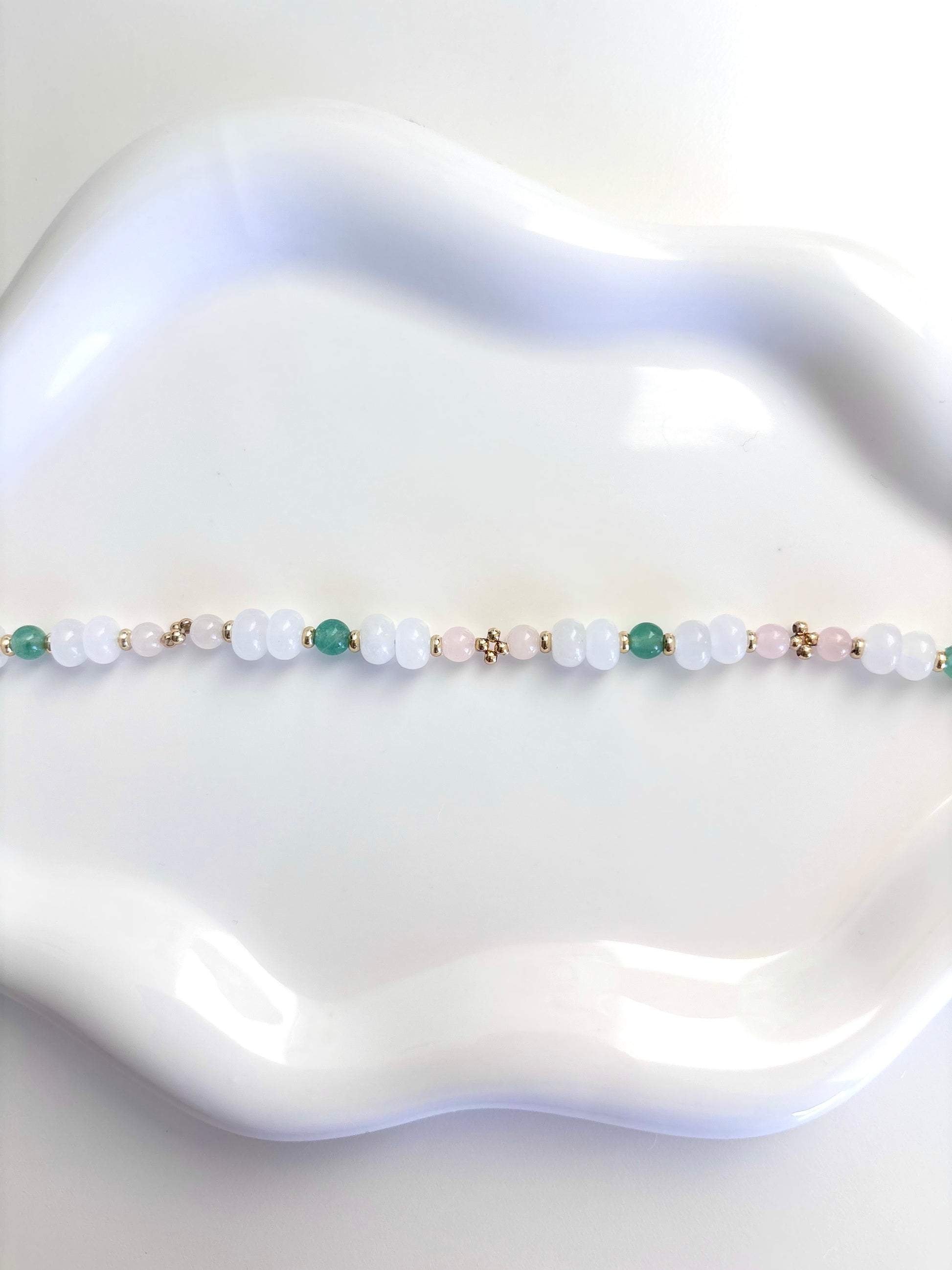 Soft Bloom - White Jade, Rose Quartz, Green Aventurine, 18k Gold Filled Beads Bracelet
